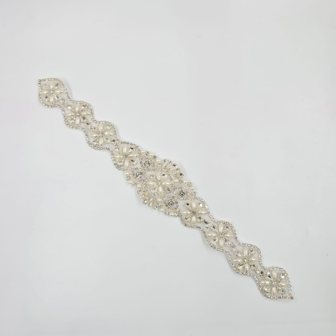 APLICAȚIE TERMOADEZIVĂ CU CRISTALE ȘI MĂRGELE – 33 x 5 cm | LA BUCATĂ