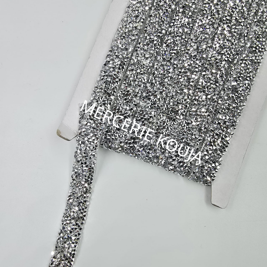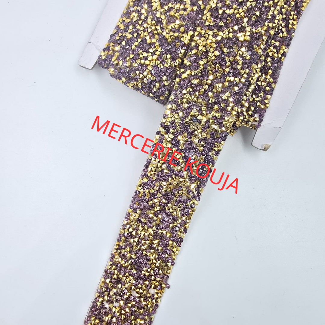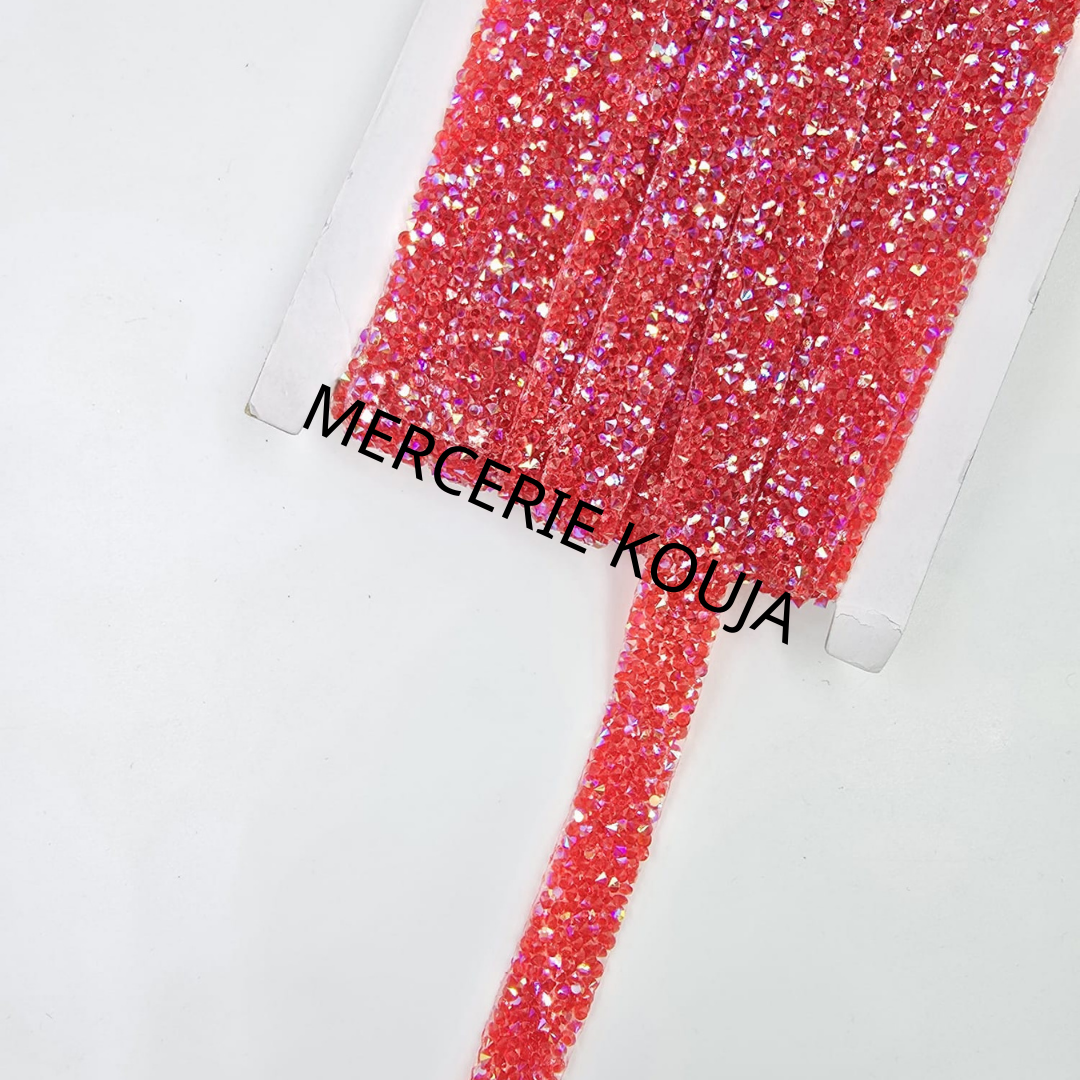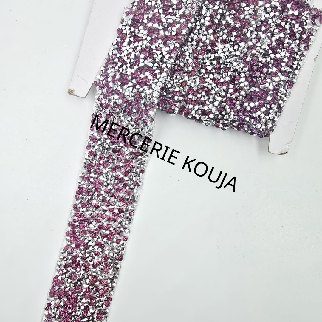 - Lățime variabilă: 1,5 cm – 3,5 cm - Material: Strasuri lipite pe bandă adezivă - Gama largă de culori disponibile - Preț: pe metru - Ușor de aplicat cu fierul de călcat - Perfectă pentru personalizări rapide, colorate și elegante