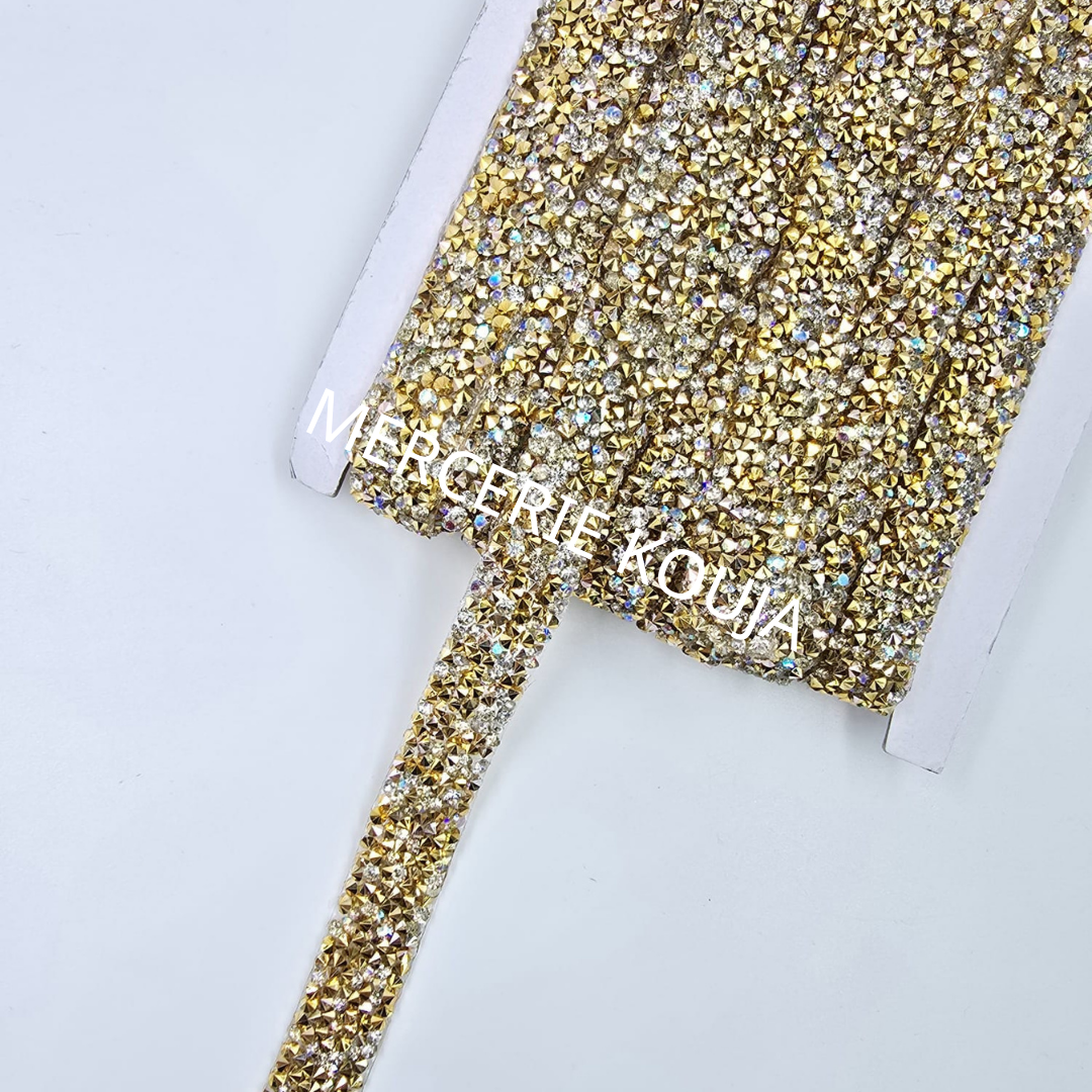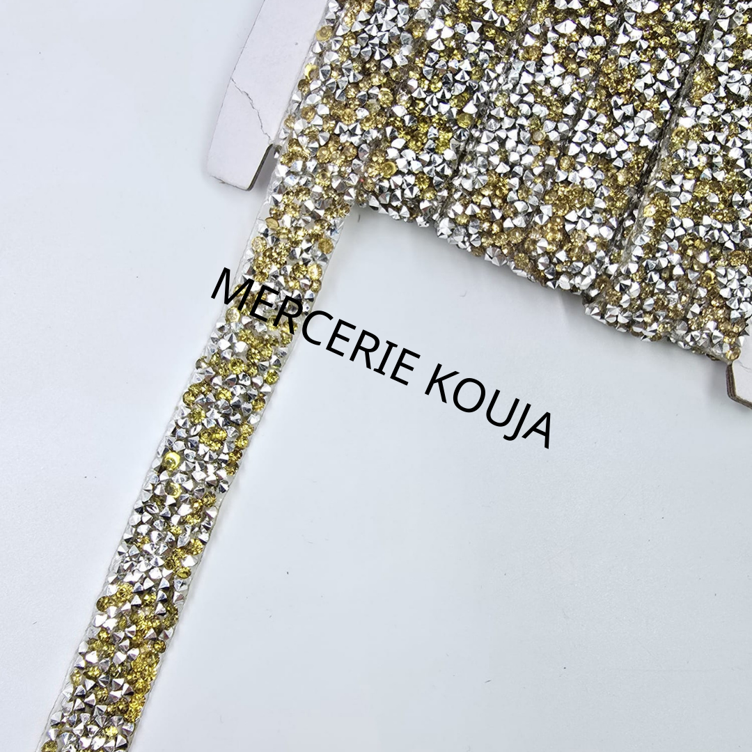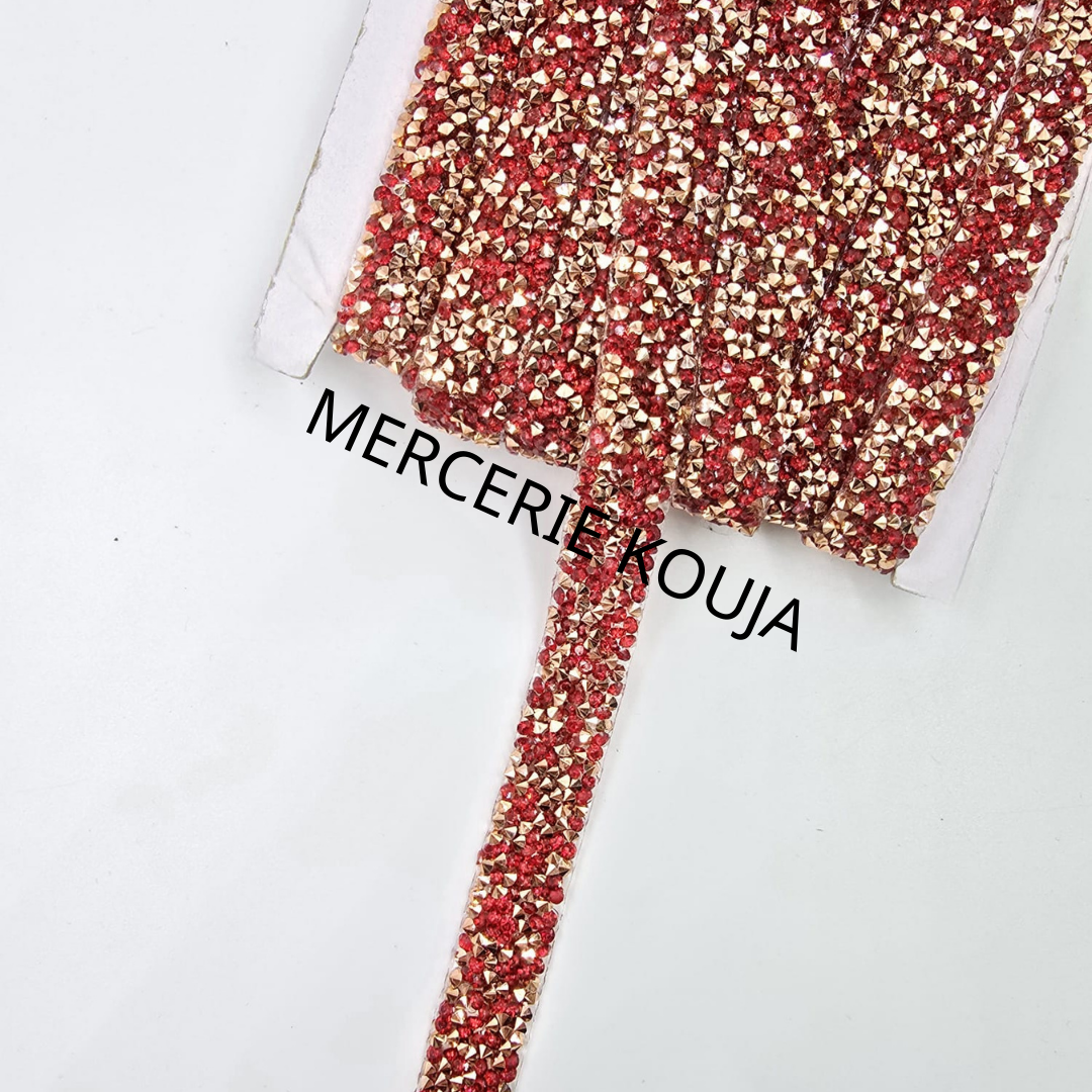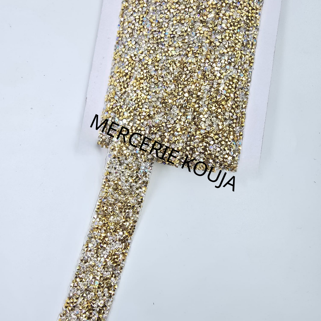 - Lățime variabilă: 1,5 cm – 3,5 cm - Material: Strasuri lipite pe bandă adezivă - Gama largă de culori disponibile - Preț: pe metru - Ușor de aplicat cu fierul de călcat - Perfectă pentru personalizări rapide, colorate și elegante