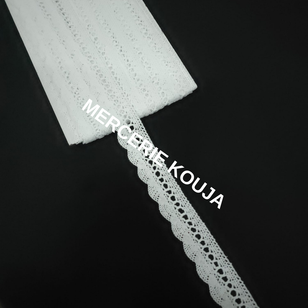 Dantelă fină și rezistentă din bumbac 100% Luxtex, ideală pentru proiecte handmade, trusouri, decorațiuni și accesorii vestimentare. Culoarea alb adaugă un plus de eleganță și versatilitate oricărei creații.