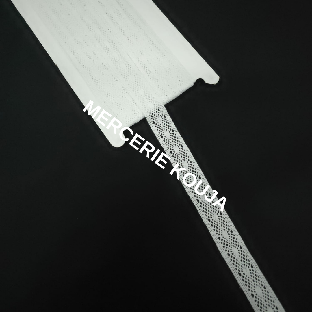 Dantelă delicată din bumbac 100% Luxtex, ideală pentru finisaje elegante, proiecte handmade, trusouri, decorațiuni și accesorii vestimentare. Culoarea alb adaugă un plus de rafinament și versatilitate.
