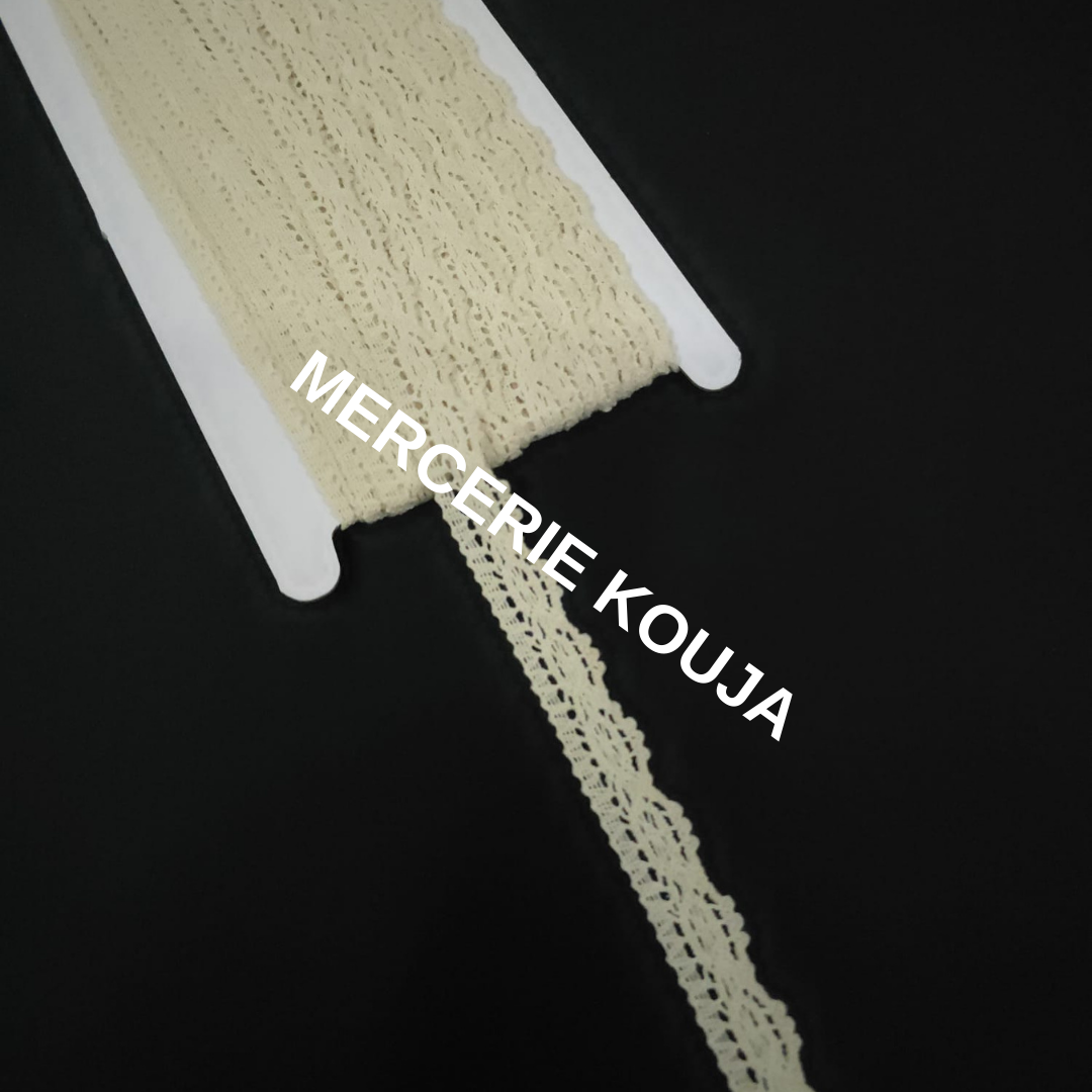 Dantelă fină și rezistentă din bumbac 100% Luxtex, ideală pentru proiecte handmade, accesorii vestimentare și decorațiuni elegante. Culoarea bej adaugă un aspect natural și cald creațiilor tale.