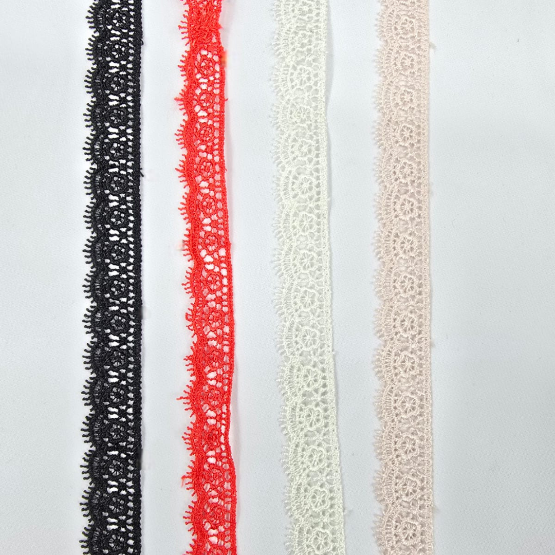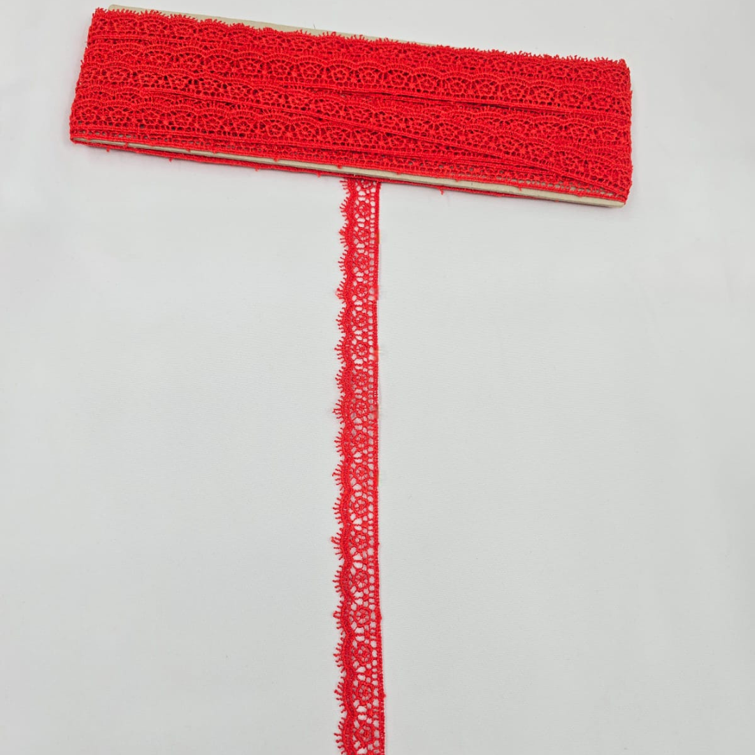 DANTELĂ POLIESTER – Lățime 2 cm | 10 YARDS / ROLĂ | Culori: Roșu, Alb, Negru, Roz Prafuit, Crem