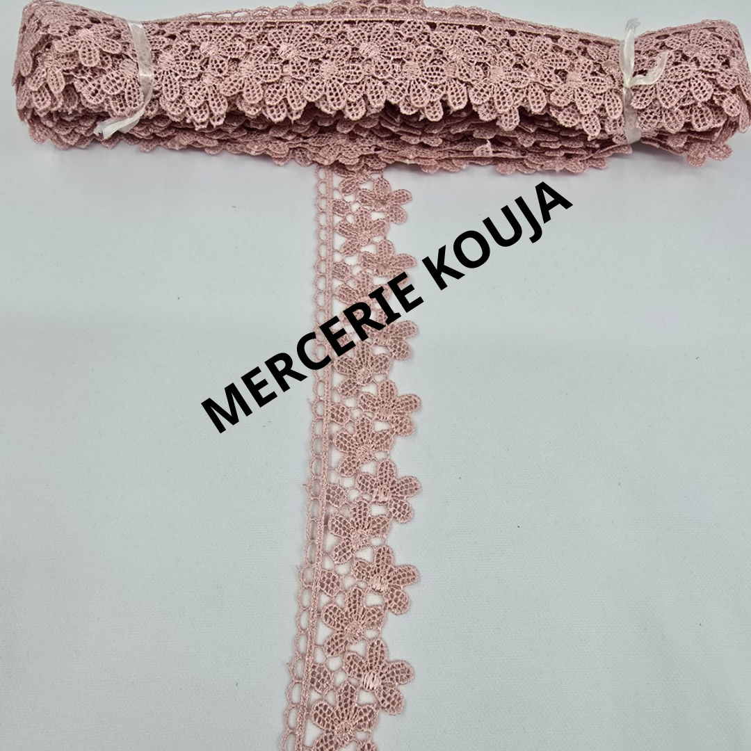 DANTELĂ POLIESTER MODEL FLORICELE – Lățime 4 cm | 10 YARDS / ROLĂ | Culori: Roz Pudră, Roz, Ivory, Grenă, Gri, Alb