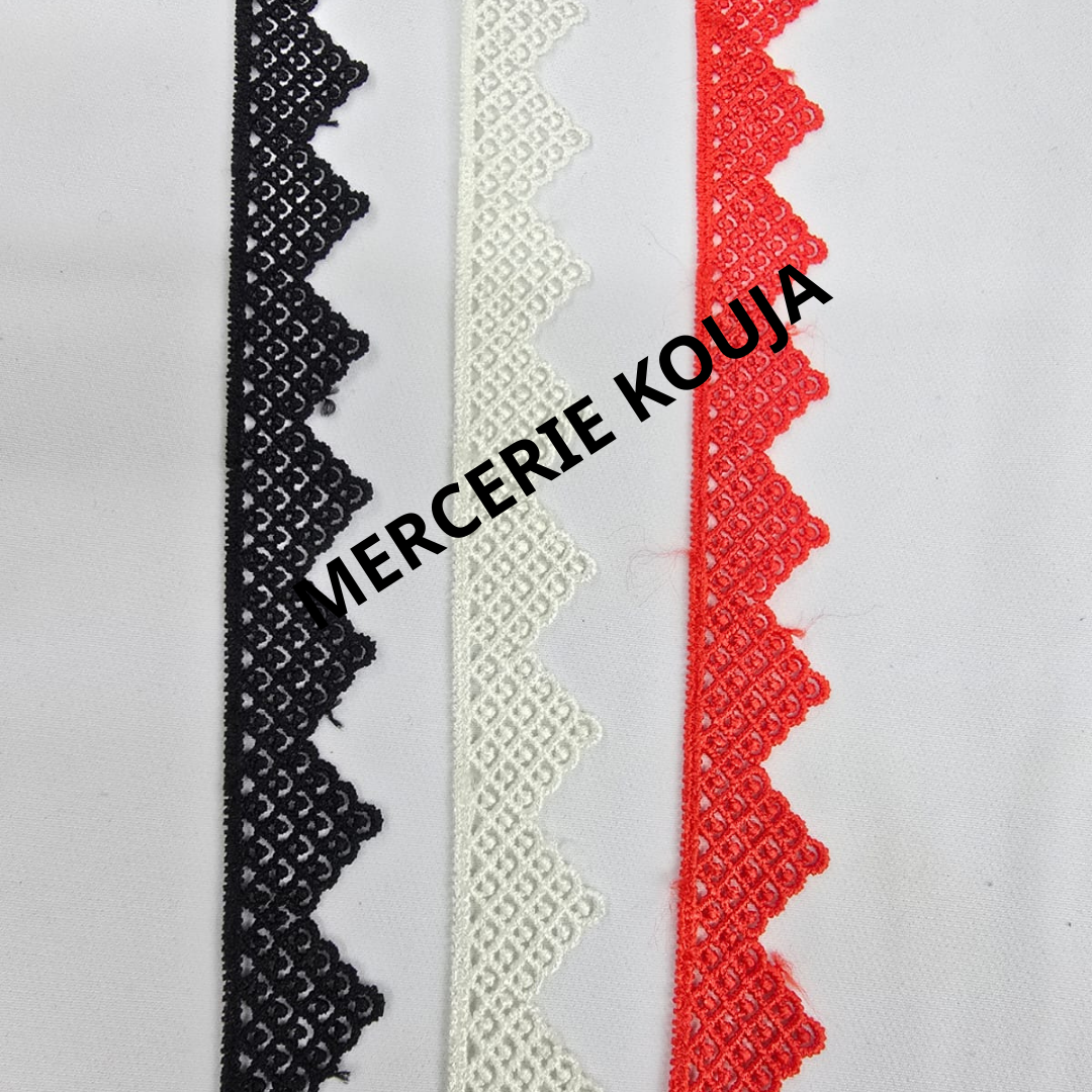 DANTELĂ POLIESTER MODEL TRIUNGHI – Lățime 2,3 cm | 10 YARDS / ROLĂ | Culori: Negru, Roșu, Ivory
