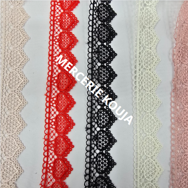 DANTELĂ POLIESTER MODEL INIMIOARE – Lățime 3,5 cm | 10 YARDS / ROLĂ | Culori: Roz Prafuit, Roșu, Negru, Ivory, Roz Pudra, Alb