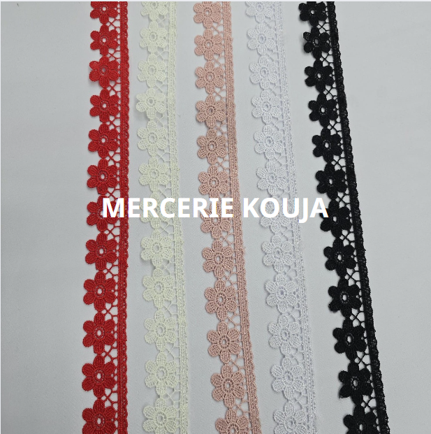 DANTELĂ POLIESTER LUXTEX – Lățime 3 cm | 10 YARDS / ROLĂ | Culori: Alb, Negru, Ivory, Roz Pudră, Roșu