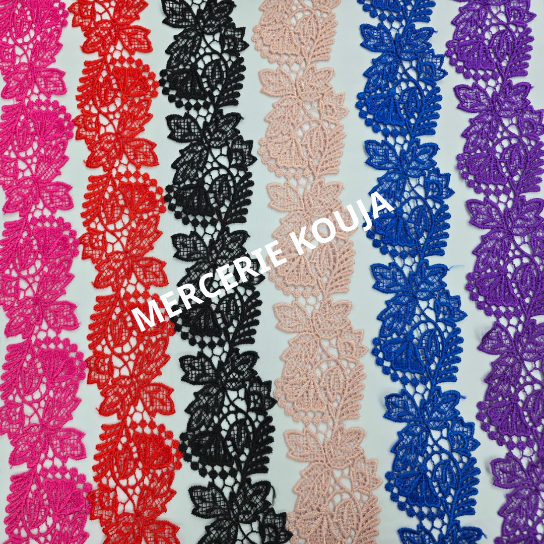 Dantelă de calitate superioară, marca Luxtex, realizată din poliester rezistent și flexibil. Ideală pentru proiecte de croitorie, decorațiuni și accesorii, disponibilă într-o gamă largă de culori pentru orice stil.