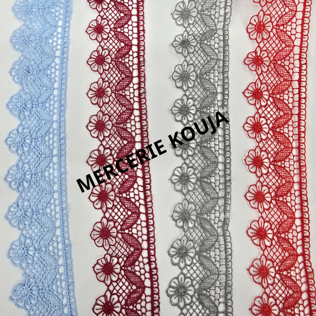 Dantelă premium din poliester, marca Lux Tex, perfectă pentru croitorie, accesorii și decorațiuni. Disponibilă într-o gamă largă de culori, oferind versatilitate și stil creațiilor tale.