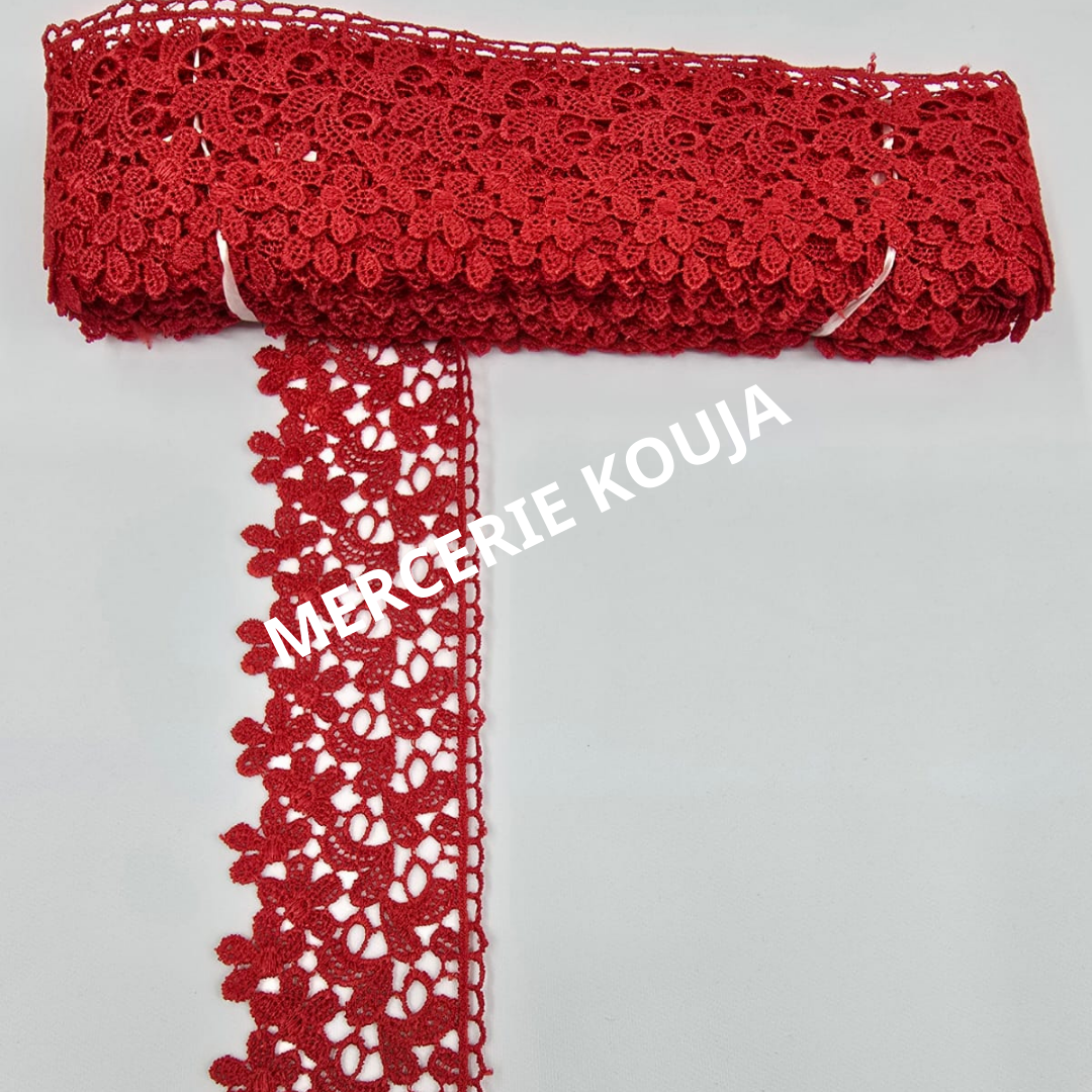 Dantelă de calitate superioară din poliester, marca Lux Tex, ideală pentru proiecte de croitorie, accesorii și decorațiuni. Disponibilă într-o varietate largă de culori pentru a se potrivi oricărui stil.