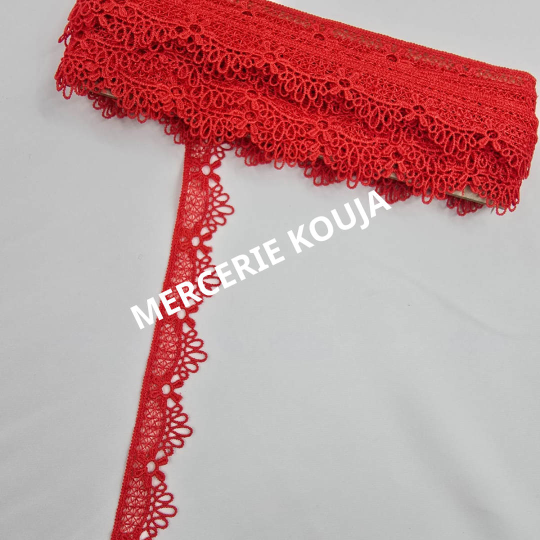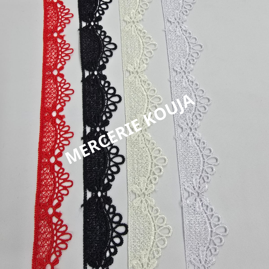 DANTELĂ POLIESTER LUX TEX – Lățime 3,5 cm | 10 YARDS / ROLĂ | Culori: Alb, Roșu, Negru, Ivory