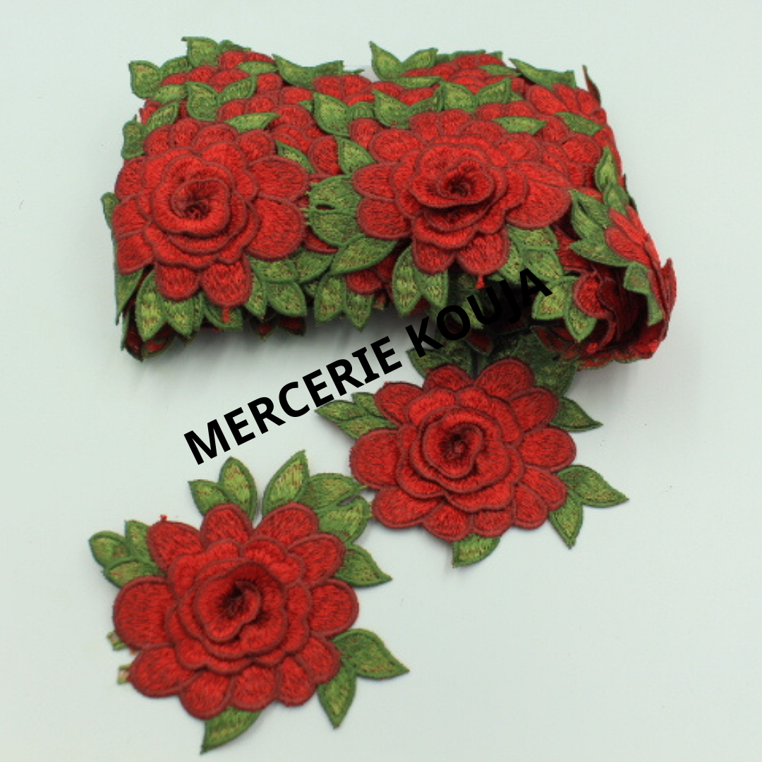 Dantelă elegantă din poliester cu model floral tip trandafir, perfectă pentru proiecte de croitorie, decorațiuni și accesorii. Disponibilă într-o gamă largă de culori pentru a adăuga un plus de rafinament creațiilor tale.